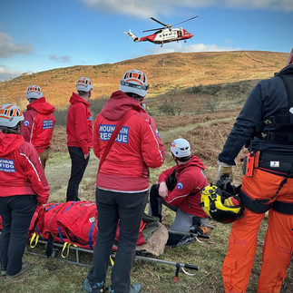 Team members attended with two Landrovers. It was quickly identified that the casualty needed rapid evacuation to hospital. This led to a request for the Maritime and Coastguard Agency helicopter from Caernarfon. The casualty was carried a short way to the helicopter before being flown to hospital. Get well soon.